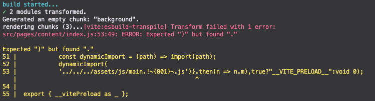 React.lazy를 사용하여 dynamic import를 하고, React.Suspense를 사용하여 fallback을 설정했다. 근데 빌드를 하면 에러가 떴다.