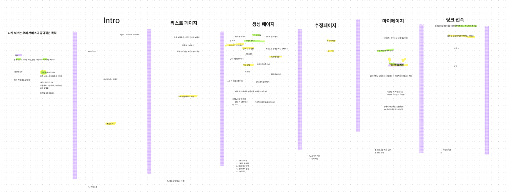 적은 것들이 어느 화면에 있을 지를 나누어보니, 6개의 페이지가 나왔다.