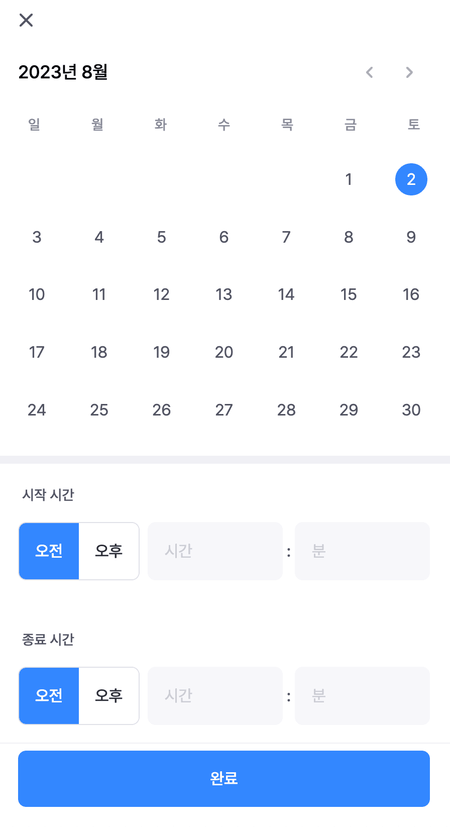 다행히 기존에 캘린더를 구현한 코드가 있어서 스타일만 변경했다. 스타일 주는 게 어려울 줄 알았는데 생각보다 금방 구현했다 ㅎㅎ